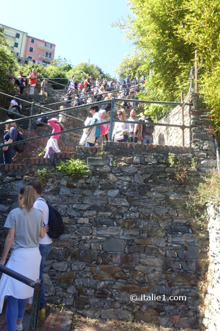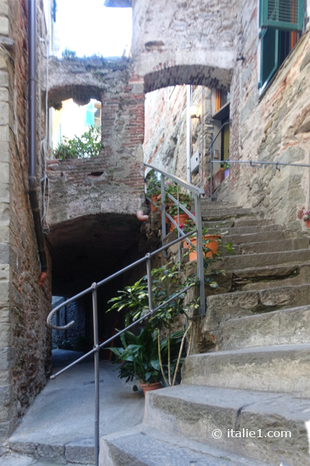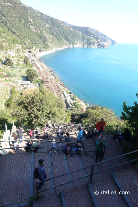 Un chemin de 382 marches, la Lardarina (dernière photo ci-dessus), le relie à la gare et à la mer. Il faut l’avoir emprunté pour apprécier ce curieux village qui est tout en longueur, perché sur la crête de sa montagne.